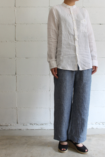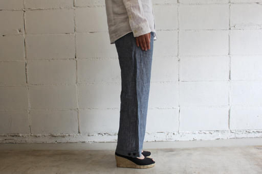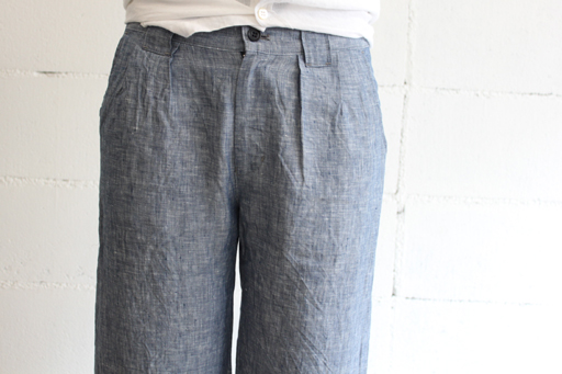 リネン8分丈パンツstyle+confort/スティールエコンフォールcol:ブルー15,540円(税込)サラっとしたシャリ感のあるリネン素材。 2タックの程よくゆったりとしたウエストヒップ周りに 太めのベルトループがアクセントに。