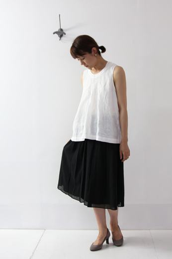 Vent Blanc / ヴァンブラン コットンシフォンタックスカート ボックスタックがたっぷりと入り、ふんわりとした透け感のある柔らかな素材感で 落ち着いたカラーリングの中にも女性らしさと軽さをプラス。