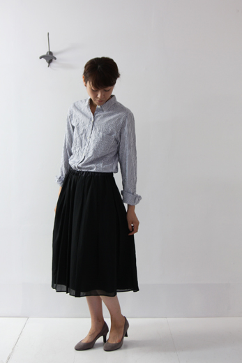 初秋の暑さが残る季節にも重宝するコットンシフォン素材のスカート。