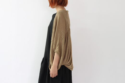 袖の切替、形状に変化をつけてひねりとドレープが