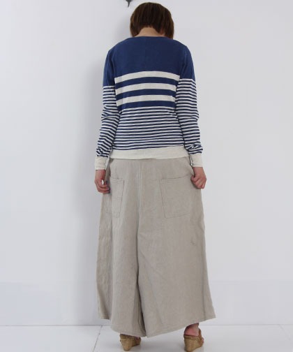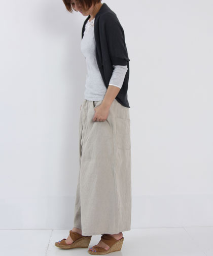 ストンと落ちるようなサイドとお尻のシルエットはシンプルなトップスとも着あわせやすく、 サラッとした肌触りで夏場でも涼しく穿いていただけます。
