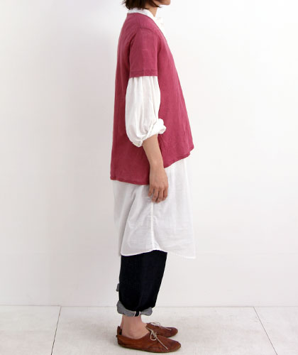Vlas blommeの定番Aライン前後差シリーズ。コルトレイクリネンの薄手天竺素材を使用。なんと言っても明るいカラーリングが存在感たっぷり。