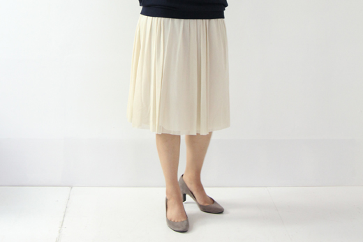 女性らしい印象のチュールスカートですが 素材がコットンでナチュラルな素材感なので エレガントになり過ぎず馴染みやすいのがいいところ。